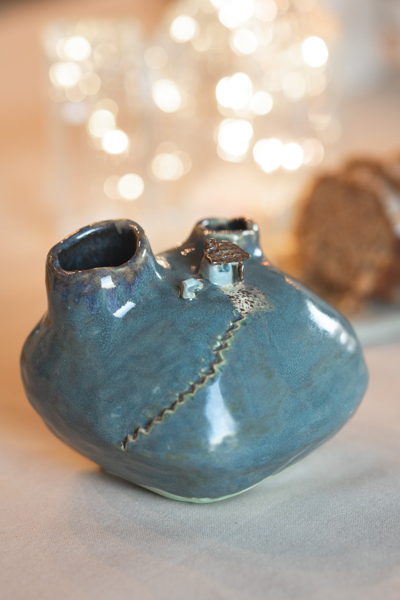 Forma nieregularna, szkliwo głębokie jak woda i nocne niebo.